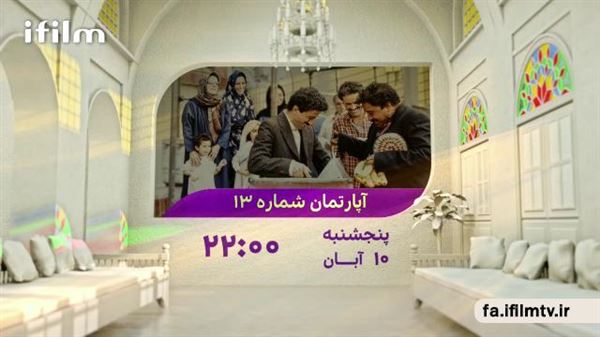 براساس این گزارش، فیلم سینمایی «آپارتمان شماره ۱۳» امشب ساعت ۲۲:۰۰ از آیفیلم پخش میشود و تکرار آن نیز روز بعد در ساعتهای ۰۶:۰۰ و ۱۴:۰۰ روی آنتن میرود.