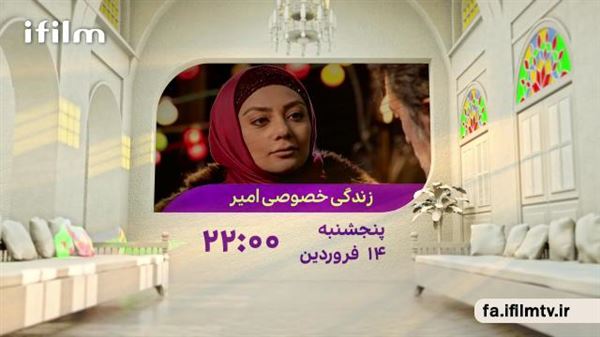 فیلم «زندگی خصوصی امیر» امشب، پنجشنبه ۱۴ فروردین رأس ساعت ۲۲ از آیفیلم فارسی پخش و در ساعتهای ۶ و ۱۴ روز جمعه بازپخش میشود.