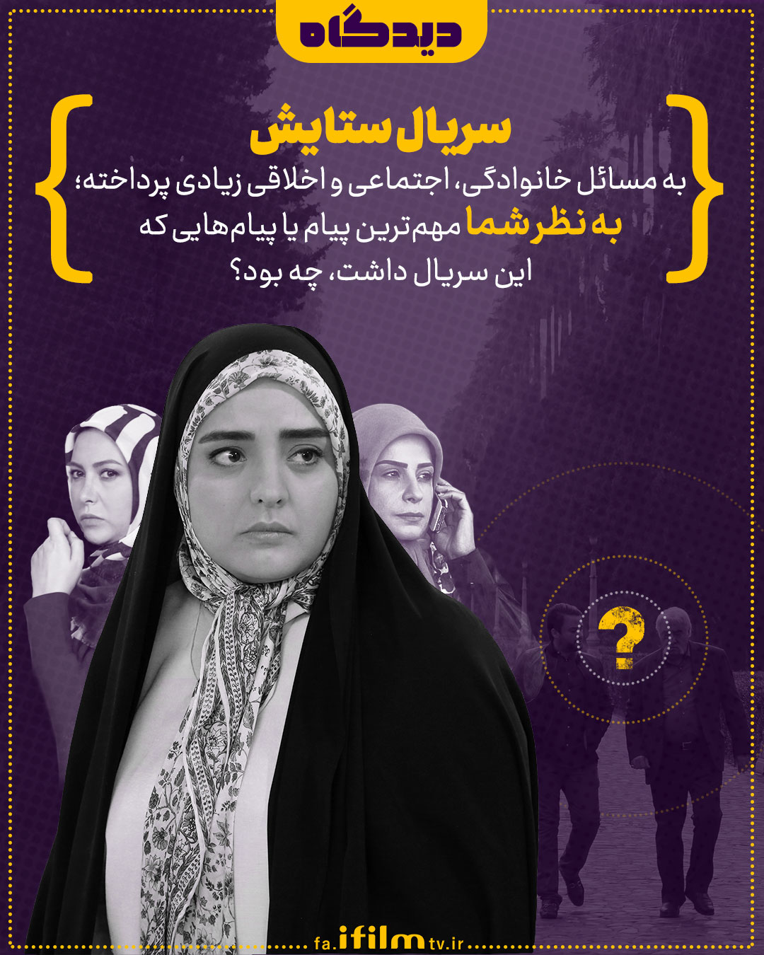 به گزارش آیفیلم، سوال جدید بخش «دیدگاه شما» با این عنوان منتشر شد: سریال ستایش به مسائل خانوادگی، اجتماعی و اخلاقی زیادی پرداخته؛ به نظر شما مهمترین پیام یا پیامهایی که این سریال داشت، چه بود؟