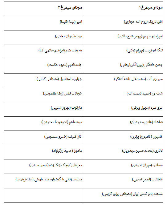 در جدول ذیل می توانید از گروه بندی فیلم های این دوره از جشنواره مطلع شوید.