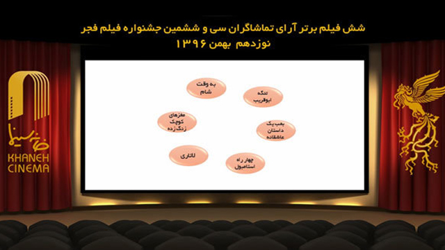 «تنگه ابوقریب» به کارگردانی بهرام توکلی، «به وقت شام» به کارگردانی ابراهیم حاتمی کیا، «لاتاری» به کارگردانی محمدحسین مهدویان، «بمب؛ یک داستان عاشقانه» به کارگردانی پیمان معادی، «چهارراه استانبول» به کارگردانی محسن کیایی، «مغزهای کوچک زنگ زده» به کارگردانی هومن سیدی فیلم ها در بین آرای مردمی هستند.