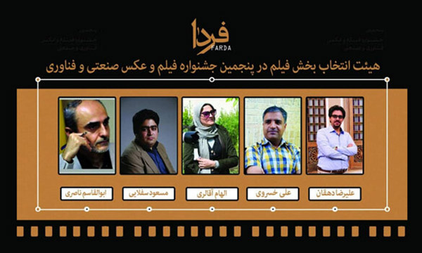 به گزارش آیفیلم به نقل از روابط عمومی جشنواره ملی فیلم و عکس فناوری و صنعتی (فردا)، پس از اتمام مهلت ارسال آثار، با حکم بهزاد رشیدی دبیر پنجمین دوره از جشنواره ملی فیلم و عکس فناوری و صنعتی (فردا)، ابوالقاسم ناصری، علیرضا دهقان، علی خسروی، مسعود سفلایی و الهام آقالری به عنوان اعضای هیأت انتخاب بخش فیلم این رویداد هنری منصوب شدند.
