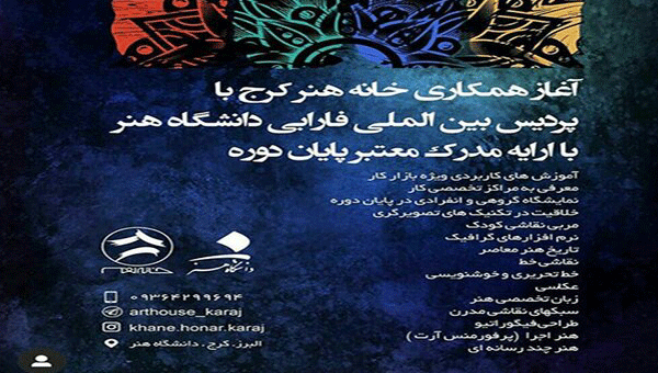 _ برگـزاری کلاسهـای آزاد هنری در خانـه هنـر کـرج و بـا تأییدیـه و صـدور گواهینامـه از سـوی «پردیـس بین المللـی فارابـی دانشـگاه هنـر»