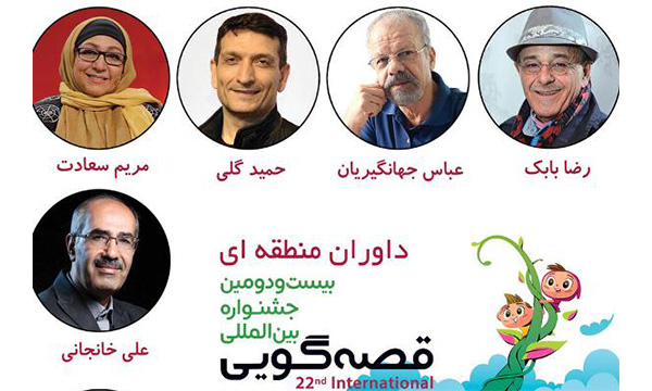 محمدرضا زمردیان، رئیس بیستودومین جشنواره بینالمللی قصهگویی کانون پرورش فکری کودکان و نوجوانان، رضا بابک از پیشکسوتان تئاتر کانون، عباس جهانگیریان نویسنده و پژوهشگر، مریم سعادت کارگردان و بازیگر، علی خانجانی مدرس قصهگویی، محسن هجری نویسنده و پژوهشگر و حمید گلی هنرمند حوزه نمایش کودک و نوجوان را به عنوان داوران مرحله منطقهای این جشنواره معرفی کرد.