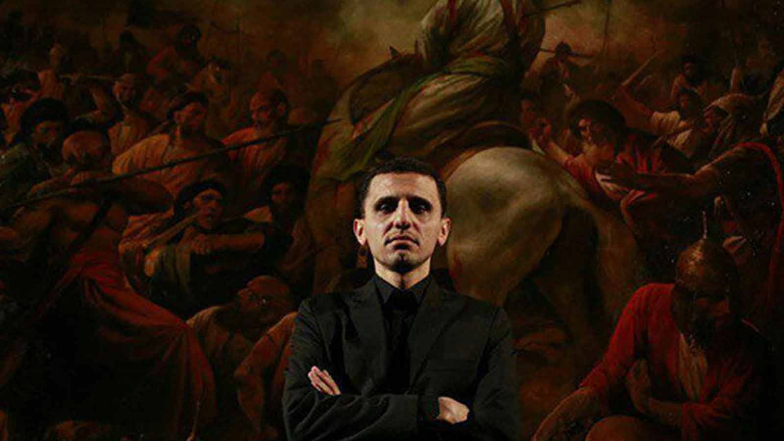 حسن روحالامین به مناسبت شهادت سردار حاج قاسم سلیمانی نقاشی جدیدی با عنوان «اصحاب آخرالزمانی اباعبدالله» خلق کرد.