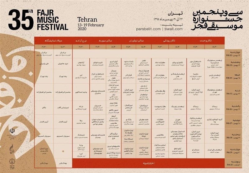 جدول برنامهها و اجراهای سی و پنجمین جشنواره موسیقی فجر در حالی منتشر شده که مرحله فروش بلیت این رویداد ملی نیز آغاز شد.