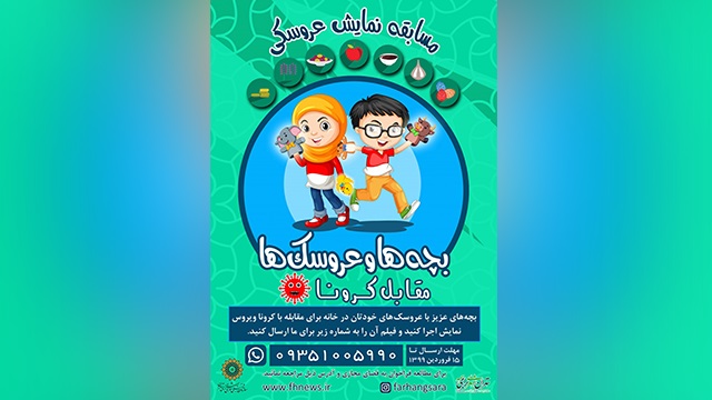 به گزارش آیفیلم به نقل از رسانه خبری سازمان فرهنگی هنری شهرداری تهران، همزمان با شیوع ویروس کرونا، مدیریت هنرهای نمایشی سازمان فرهنگی هنری شهرداری تهران فراخوان مسابقه نمایش عروسکی «بچهها و عروسکها مقابل کرونا» را منتشر کرد. در این مسابقه، کودکان با عروسکهایی که در خانه دارند نمایش عروسکی اجرا میکنند و با ارسال فیلم این اجراها، در مسابقه شرکت میکنند.