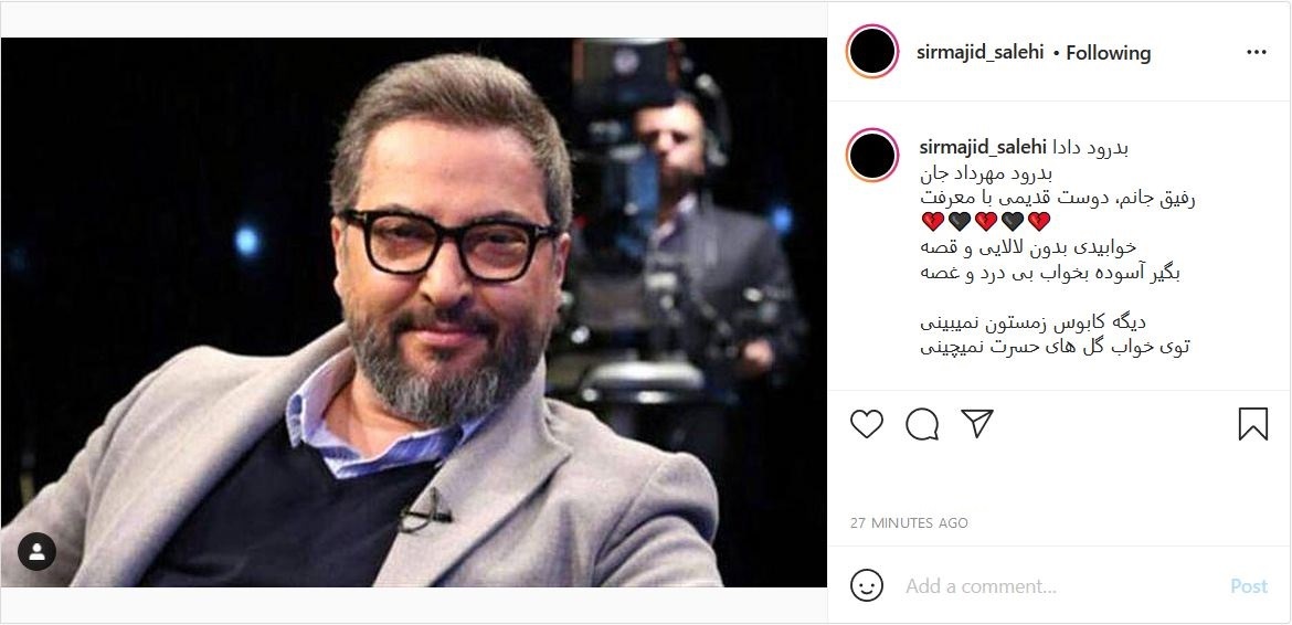 مجید صالحی هم برای درگذشت مهرداد میناوند نوشت: