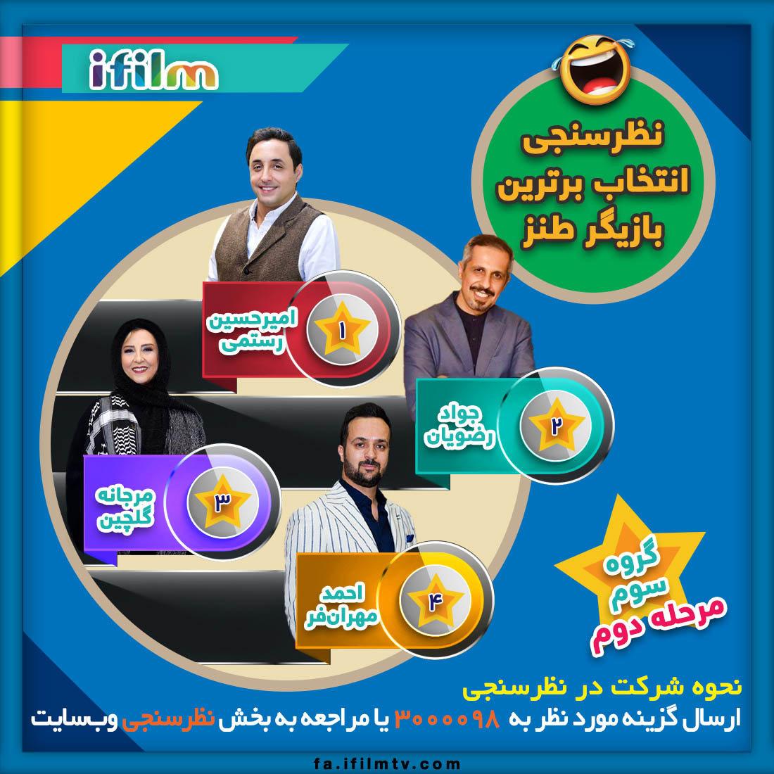 به گزارش آیفیلم، نظرسنجی برترین بازیگر طنز ایران، از ۱۵ آبان آغاز شده و تا نزدیکهای عید سال ۱۴۰۰ به طول میانجامد. این نظرسنجی با مشارکت ۵۰ بازیگر طنز کشور در ۱۰ گروه ۵ نفره آغاز شد؛ و با آرای مخاطبان آیفیلم، ۲۰ بازیگر برتر به مرحله دوم این نظرسنجی راه یافتند؛ تا پس از آن در ۵ گروه ۴ نفره رقابت خود را دنبال کنند.