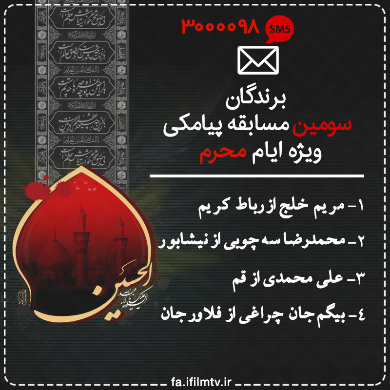 شبکه آیفیلم اسامی برندگان سومین مسابقه پیامکی ویژه ایام محرم را اعلام کرد.