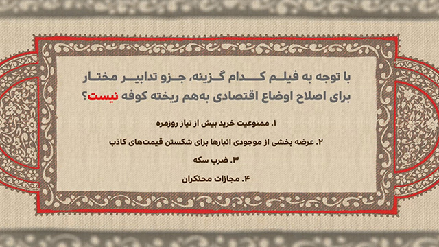 با توجه به فیلم کدام گزینه، جزو تدابیر مختار برای اصلاح اوضاع اقتصادی بههم ریخته کوفه نیست؟