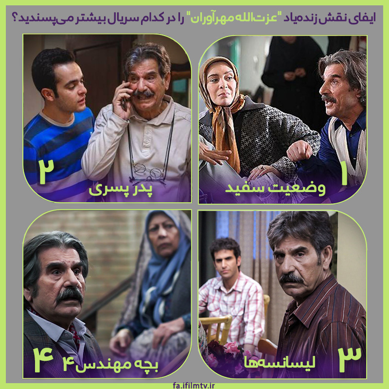 در نظرسنجی جدید شبکه آیفیلم به بهترین سریال زنده یاد "عزتالله مهرآوران" رأی بدهید.