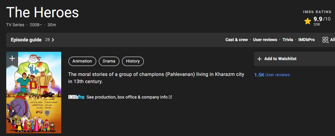 انیمیشن «پهلوانان» در حال حاضر یکی از بهترین انیمیشن های موجود در سایت جهانی IMDB معرفی شده است.
