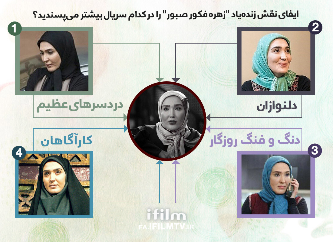 ایفای نقش زندهیاد "زهره فکور صبور" را در کدام سریال بیشتر میپسندید؟