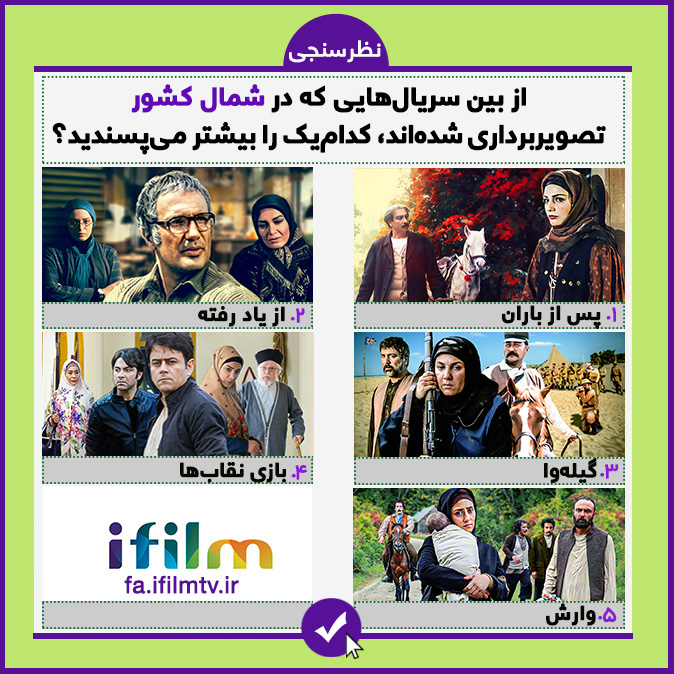 نظرسنجی جدید آیفیلم، به سریالهایی اختصاص یافته که در شمال کشور مقابل دوربین رفتهاند.