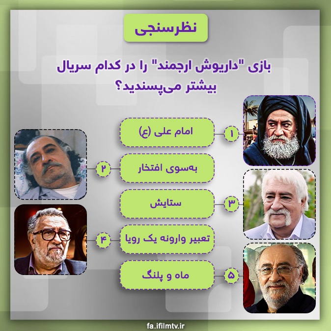 نظرسنجی جدید آیفیلم، به بهترین بازی "داریوش ارجمند" در مجموعههای تلویزیونی اختصاص دارد.