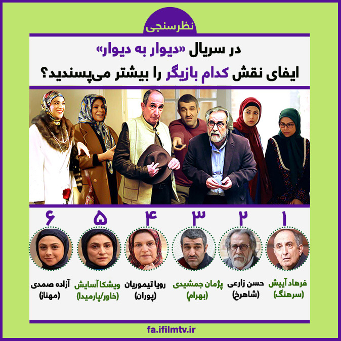 با شرکت در نظرسنجی شبکه آیفیلم بهترین بازیگر سریال «دیوار به دیوار» را انتخاب کنید.