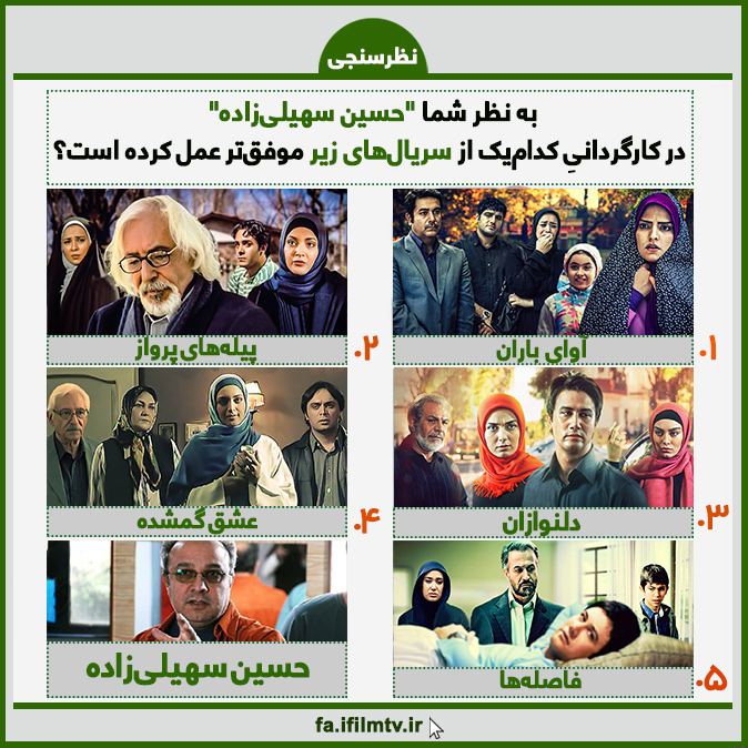 در نظرسنجی جدید آیفیلم، درباره کارگردانی"حسین سهیلیزاده" در سریالهای مختلف سوال کردهایم.