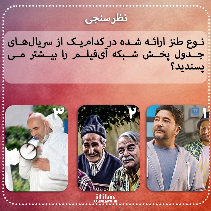 نظرسنجی جدید شبکه آیفیلم به «سریالهای طنز پخش شده از آیفیلم" اختصاص یافته است.